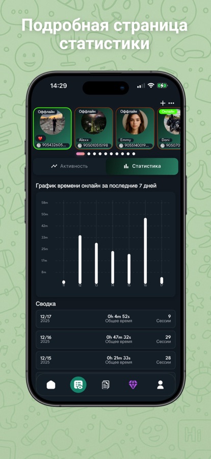 Отслеживайте активность в WhatsApp в реальном времени. Получайте мгновенные уведомления, когда ваши контакты выходят в сеть.