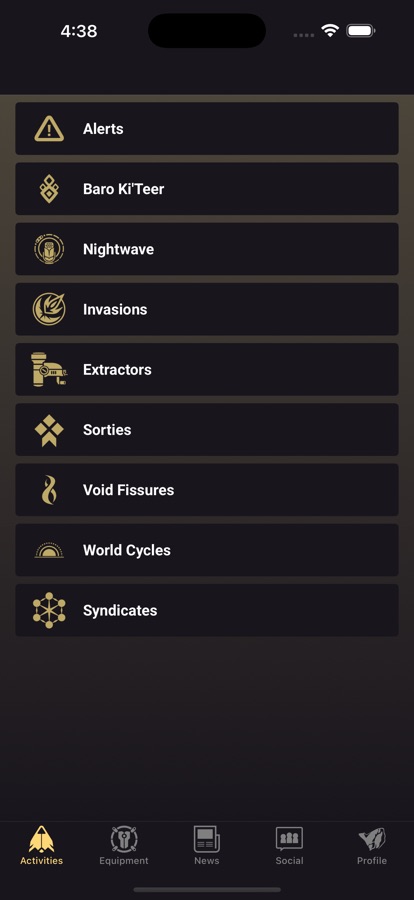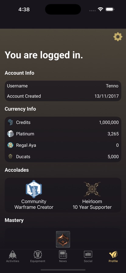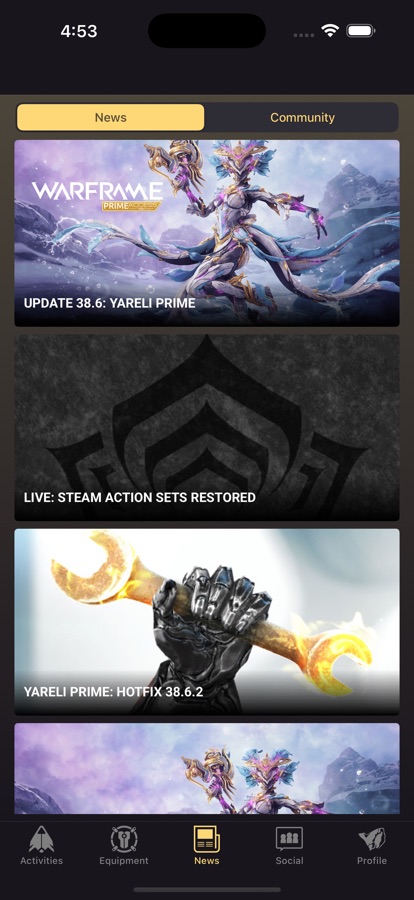 Оставайтесь на связи с помощью приложения-компаньона Warframe и получайте последние новости. Войдите в систему, используя учетную запись ПК, PlayStation Network, Xbox Live или Nintendo, чтобы воспользоваться всеми удобными функциями.