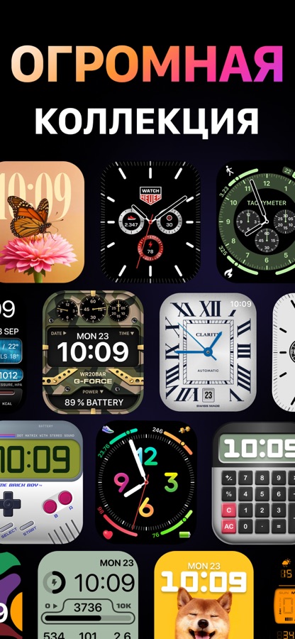 — Циферблаты со сложностями и виджетами, анимированные циферблаты, циферблаты с фотографиями и портретами.