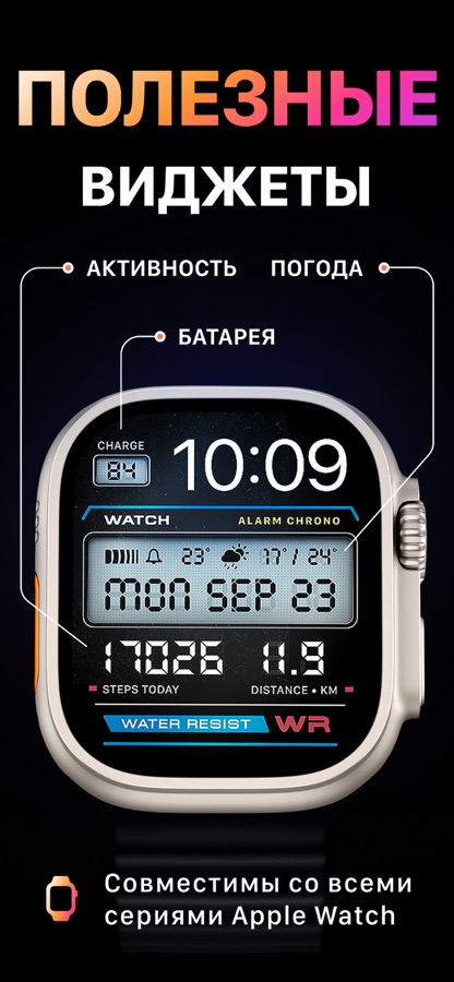 — Циферблаты с усложнениями работают на всех часах Apple Watch, начиная с Apple Watch Series 4 (Series 4, Series 5, Series 6, Series 7, Series 8, Series 9, Series 10, SE, SE 2, Series ULTRA и Series ULTRA 2).
