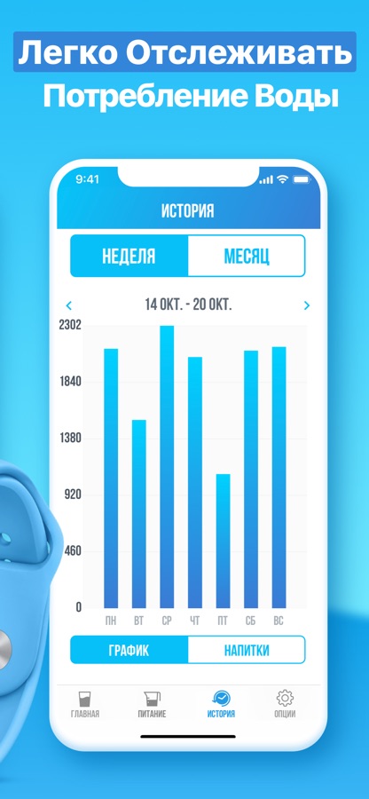 * Следите за тем, когда и сколько воды вы пьете в день, неделю и месяц.