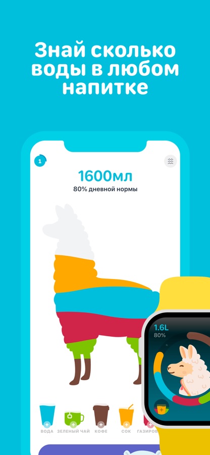 Бесплатный трекер воды Waterllama — простое и веселое приложение. Оно служит как напоминание пить воду регулярно.