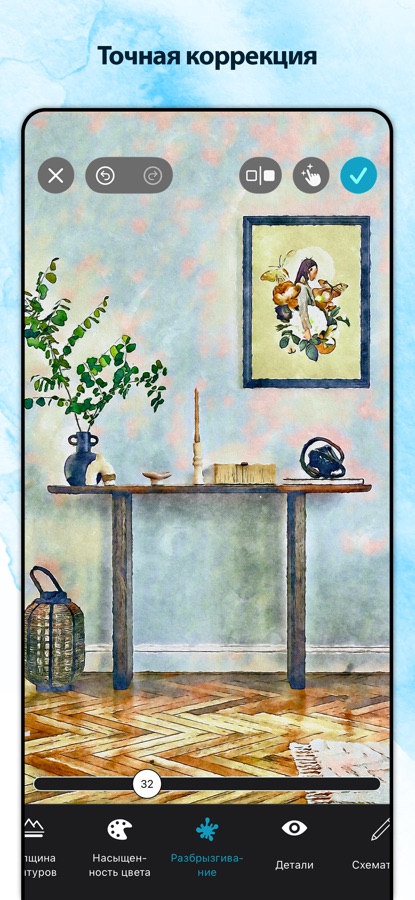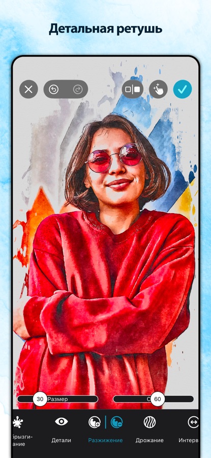 Для преображения снимков предусмотрен 31 акварельный эффект. Результат обработки можно сразу экспортировать или использовать как основу и продолжить творческий поиск. Найдите идеальный стиль для своих портретов, повседневных снимков или фото из путешествий.