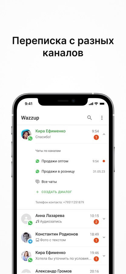 В мобильном приложении Wazzup менеджеры могут пользоваться функциями Wazzup с телефона. Менеджеры не будут привязаны к компьютеру, что увеличит скорость и количество ответов клиентам.