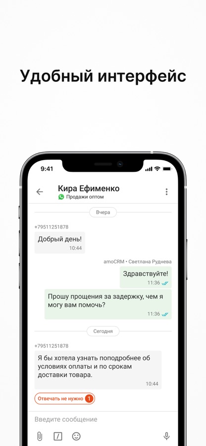 Приложение исключает потери входящих заявок из-за человеческого фактора. У нас нет понятия «непрочитанные сообщения», есть только «неотвеченные сообщения». Уведомление о входящем сообщении не пропадет, если просто нажать на диалог. Чтобы снять с диалога уведомление, менеджер должен либо ответить клиенту, либо нажать на специальную кнопку «Не требует ответа». Если менеджер не ответил клиенту — это его осознанное действие.