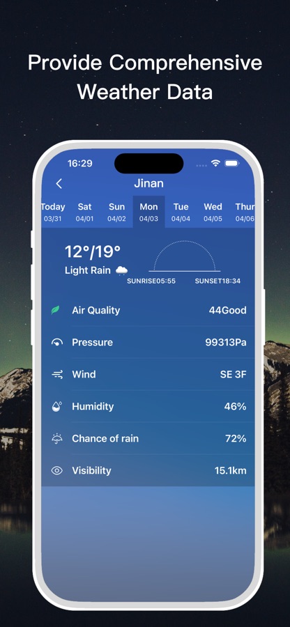 * Проверьте УФ-индекс, время восхода и захода солнца, скорость и направление ветра и многое другое.