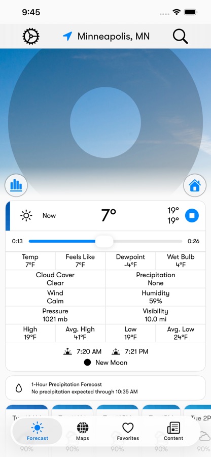 With Apple CarPlay, Weatherology provides a hands-free, safe way to get the latest weather in your car.