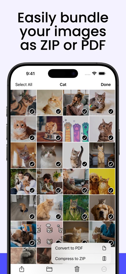Массовая загрузка: сохраняйте несколько изображений в фотопленку или альбомы приложения одним касанием.