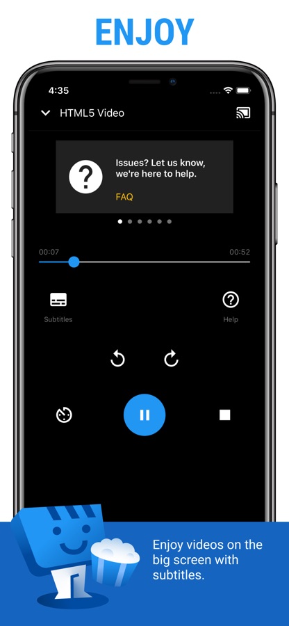 Web Video Caster® позволяет смотреть на вашем ТВ видео с ваших любимых веб-сайтов, включая фильмы, ТВ-шоу, трансляции новостей, спорта. Також дає змогу транслювати відео, які зберігаються на вашому телефоні. Также поддерживаются фотографии и аудио файлы. На веб-странице были обнаружены субтитры. Также, вы можете использовать свои собственные субтитры.