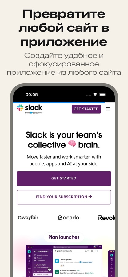 • Превращайте любой веб-сайт в вид, похожий на приложение