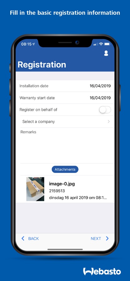 The ambition of Webasto is to register every product that is installed in a vehicle. The Webasto Service App enables our partners to do so quickly and easily.