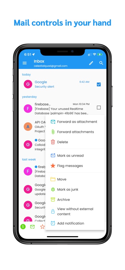 • Configurable swipe gestures that let you decide important actions to appear when you slide an email to delete, mark, flag or archive