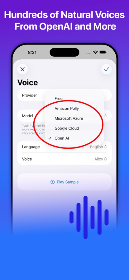 Всё просто! Просто перейдите на любую веб-страницу с помощью встроенного веб-браузера и нажмите кнопку воспроизведения. Web Out Loud будет озвучивать веб-страницы, используя широкий выбор голосов: от бесплатных голосов, доступных на вашем устройстве, до высококачественных голосов премиум-класса от Amazon Polly , Microsoft Azure , Google Cloud и других.