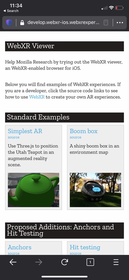 Mozilla’s WebXR Viewer is an augmented reality (AR) viewer that lets you create and run AR experiences built with web technologies and ARKit.