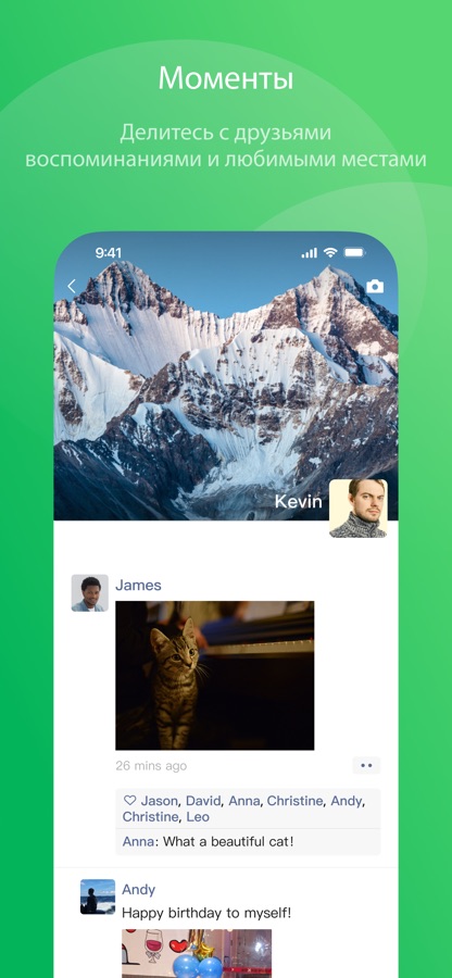 – ПОДДЕРЖКА РАЗЛИЧНЫХ ЯЗЫКОВ: приложение локализовано на 20 языков и позволяет переводить сообщения друзей и публикации в Моментах.