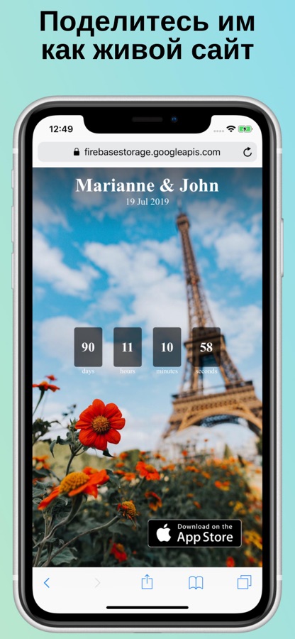 Share your love with your friends or your spouse. Create a live website that updates every second and share it on social media or wherever you want. It looks awesome and builds up the expectations! It’s also compatible with every device, including laptops, tablets and smartphones!