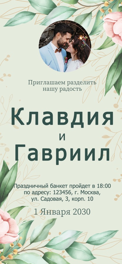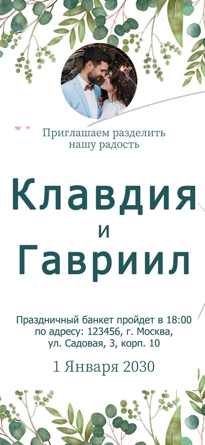 Интуитивный интерфейс: Наш интуитивно понятный интерфейс делает процесс создания свадебных приглашений легким, даже для тех, кто не имеет опыта в дизайне. Просто выберите шаблон, настройте его по своему вкусу, и вуаля — ваше приглашение готово!