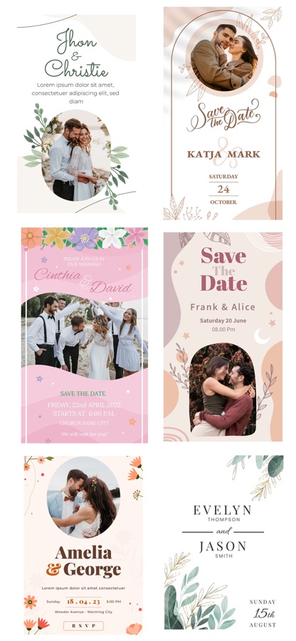 Настроенные шаблоны: Выбирайте из широкого выбора профессионально разработанных шаблонов, каждый из которых полностью настраиваем под ваши предпочтения. От элегантных и традиционных до современных и модных, есть шаблон для каждой свадебной темы.