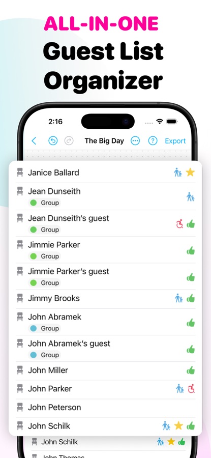 · Guest list builder. Keep track of RSVPs, see who’s coming, how many guests are VIPs or children.