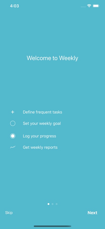 Weekly helps you to keep an overview of tasks you want to do regularly. Just set your weekly goal, log your activities and get a report when the week is over.