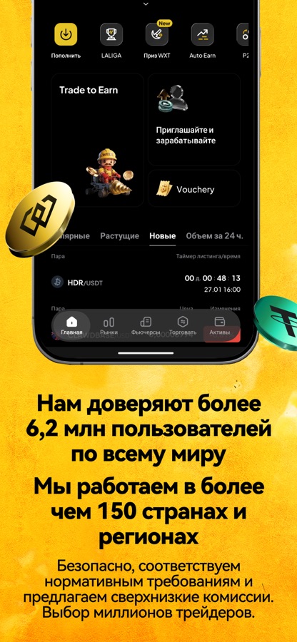 Торгуйте более 1700 криптовалютами с высокой ликвидностью и сверхнизкими комиссиями. WEEX предоставляет понятный и интуитивный интерфейс для легкой торговли BTC, ETH, альткоинами и мемкоинами — идеальный вариант как для начинающих, так и для опытных трейдеров.