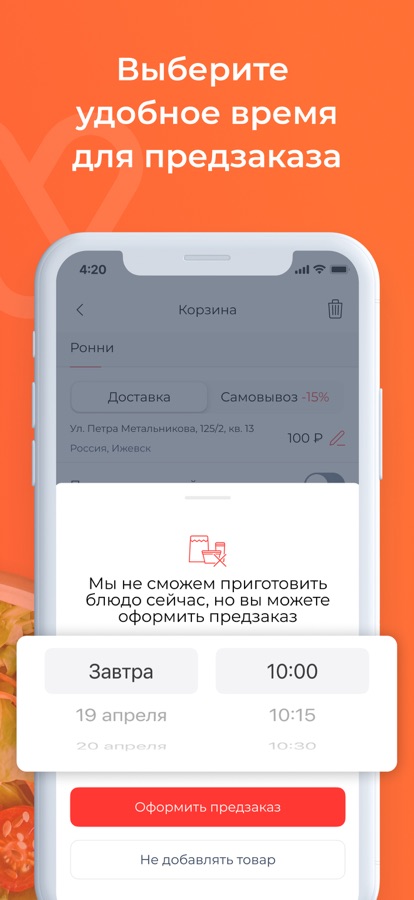 Планируйте все заранее и оформляйте предзаказ доставки или самовывоз из любого ресторана.