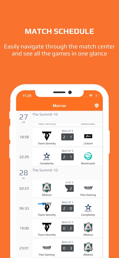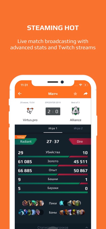 • Пуш-уведомления о начале матчей, важных новостях и стримах ваших любимых игроков