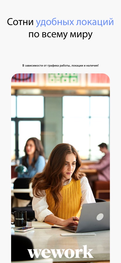 «Один из ведущих мировых поставщиков гибких рабочих пространств поможет вам повысить эффективность работы. Удобное посуточное бронирование совместного рабочего пространства и почасовое бронирование переговорных комнат. WeWork предлагает вам все необходимые инструменты для продуктивной работы. Скачайте приложение для резидентов WeWork и найдите оптимальную локацию среди сотен предложений.