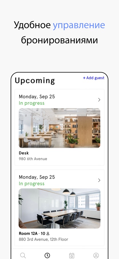 **Эта функция доступна для некоторых типов резидентства и не предусмотрена для резидентов WeWork On Demand. Резидентство WeWork On Demand доступно только в США, Канаде, Австралии, Сингапуре, Великобритании, Ирландии, Германии, Франции, Испании, Польше, Нидерландах, Бельгии, Швеции, Чехии, Мексике и Бразилии.