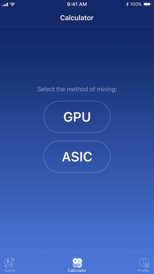 В приложении для начала расчета необходимо выбрать метод майнинга.