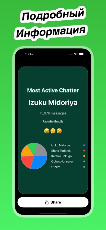 WhatStats генерирует статистику на вашем устройстве и не делится ей с другими сервисами.