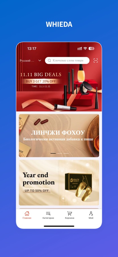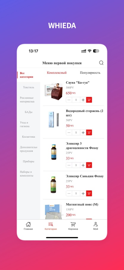 Приложение WHIEDA позволяет участникам получать удовольствие от покупки и наслаждаться высококачественной продукцией.