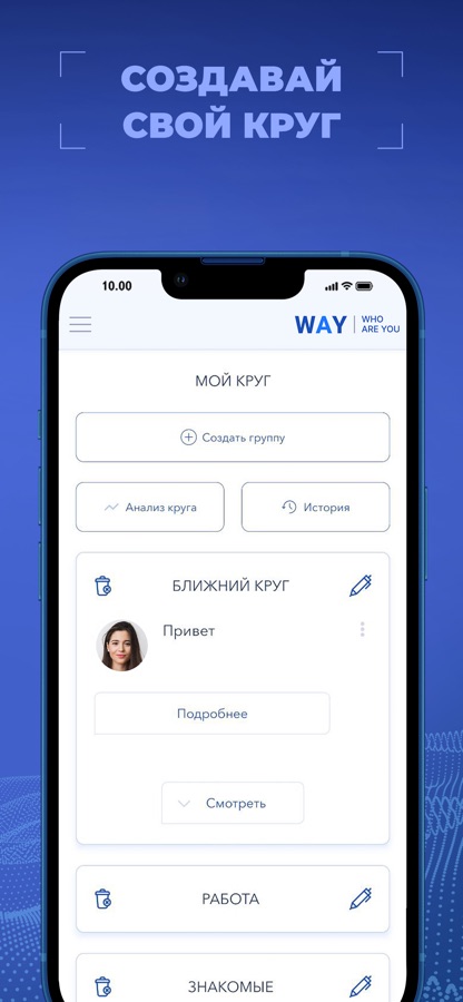 Составляйте психологические портреты членов семьи, близких и знакомых и получайте развернутую информацию, которая всегда будет под рукой в разделе «Мой Круг». Этот раздел позволяет не терять важные данные о близких людях и позволяет в любой момент вернуться и перечитать.