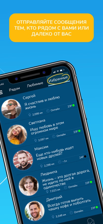 Загрузите бесплатное приложение, заполните свой профиль – и вы готовы для знакомств. Найдите и заведите беседу с интересными незнакомцами, старыми и новыми друзьями, коллегами по работе, соседями и обычными знакомыми, которые находятся неподалеку. Ведите личную переписку, обменивайтесь фотографиями, знакомьтесь с людьми, которые вам нравятся, и блокируйте тех, которые вам не по душе! Нужно что-то еще? Подключите платные функции и поддайте жару.