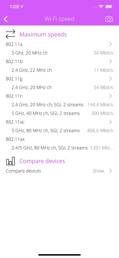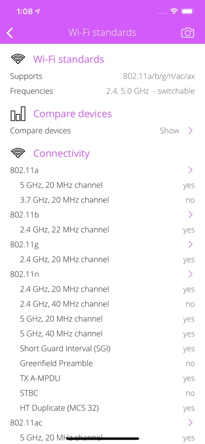 • Compare supported Wi-Fi standards and frequencies