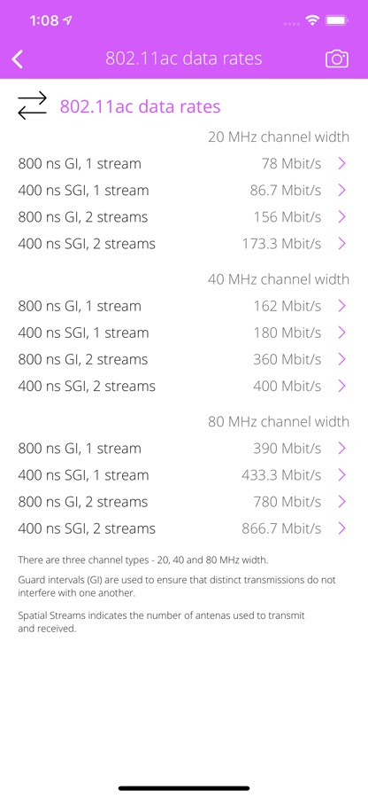 • Detect wireless speed-up features (short guard interval, STBC, HT duplicate, etc).