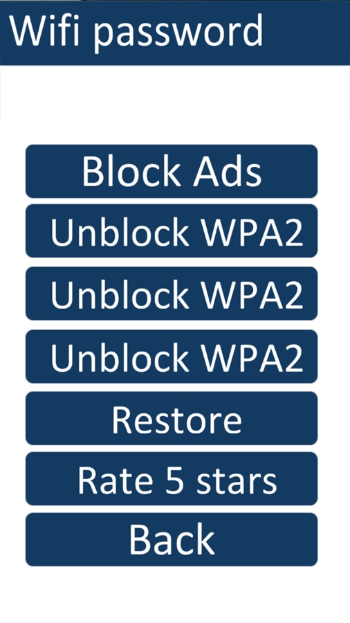 Это приложение не для взлома или взлома WiFi своей только для генерации случайных паролей. Поэтому, пожалуйста, не пытайтесь взломать любой пароль, потому что он не будет ходить на работу.