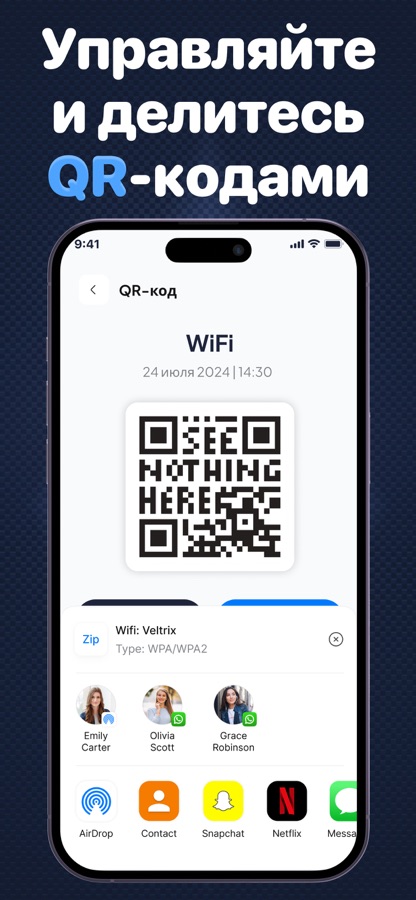 • Дома и офиса – Чтобы создавать и делиться QR-кодами Wi-Fi с семьёй или коллегами