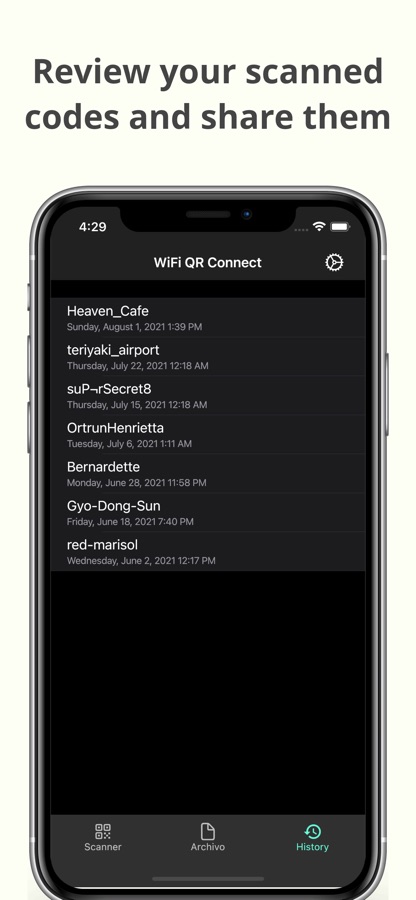 In addition to what is mentioned above, this app also allows you to recover any codes that you have previously scanned. You will be able to see its data just as if you had just scanned it. In addition, it also has several additional options such as sharing the code or viewing the network password.