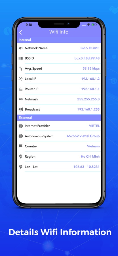 • Wifi Details Info: provide many information about your internet provider