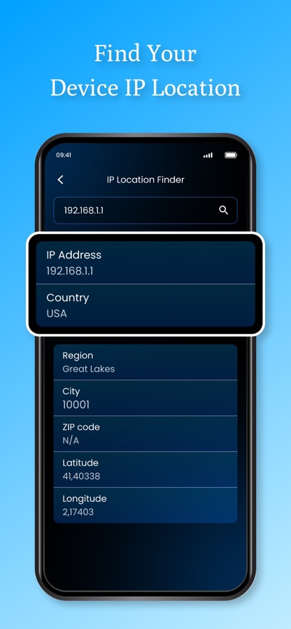 WiFi Speed Test-WiFi Analyzer offers an essential feature for finding the IP location of any place. Enter an IP address and press search to locate its position.