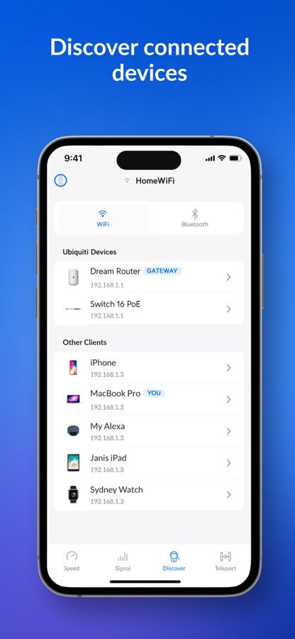 — Scan network subnet for details on available devices, using Bonjour, SNMP, NetBIOS, and Ubiquiti discovery protocols.