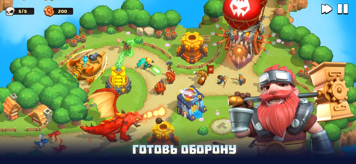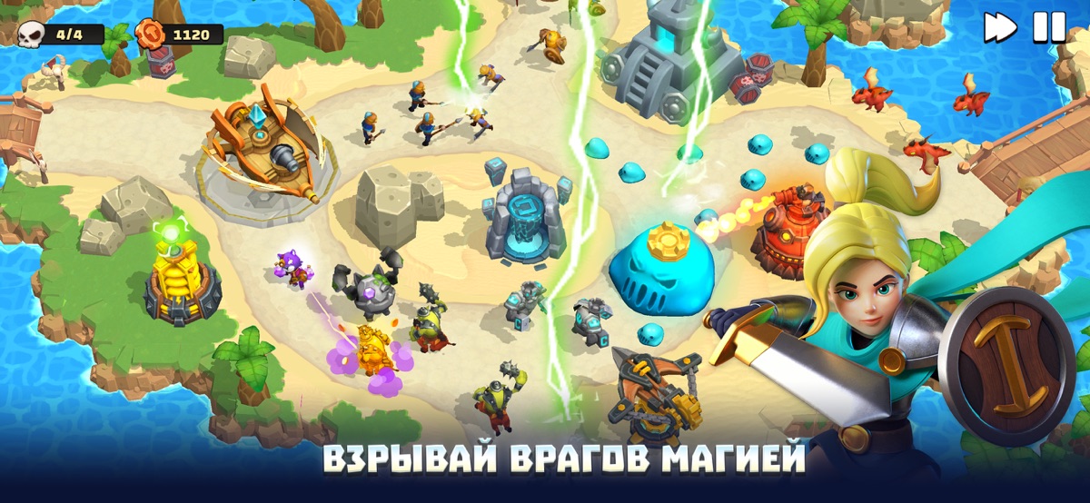 -Обилие стратегий с 10 уникальными башнями 6 разных элементов, с 6 отдельными героями, 12 заклинаниями и различными игровыми режимами, которые бросят вам вызов.