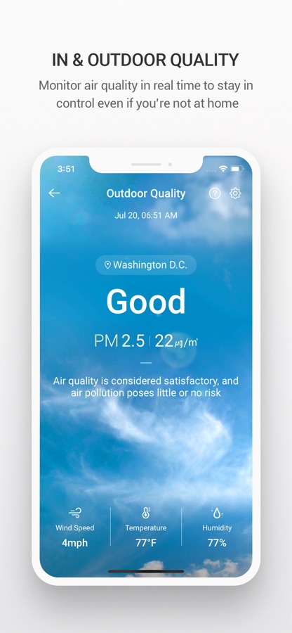 — Мониторинг качества воздуха в режиме реального времени, чтобы контролировать его, даже если вы не дома