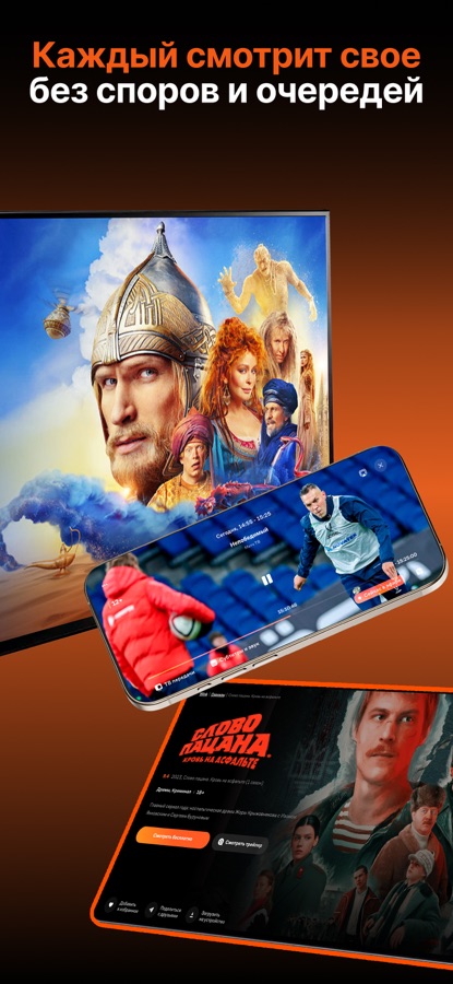 Мультиплатформенность: Смотрите ваши любимые фильмы и сериалы на телевизоре, смартфоне, планшете или компьютере. Приложение автоматически синхронизирует прогресс просмотра на всех устройствах.