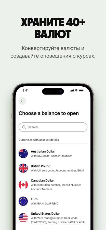 • Получите собственный номер счета в Великобритании и британский банковский код, счет IBAN для евро, реквизиты австралийского счета и другие реквизиты — как если бы у вас были местные банковские счета по всему миру