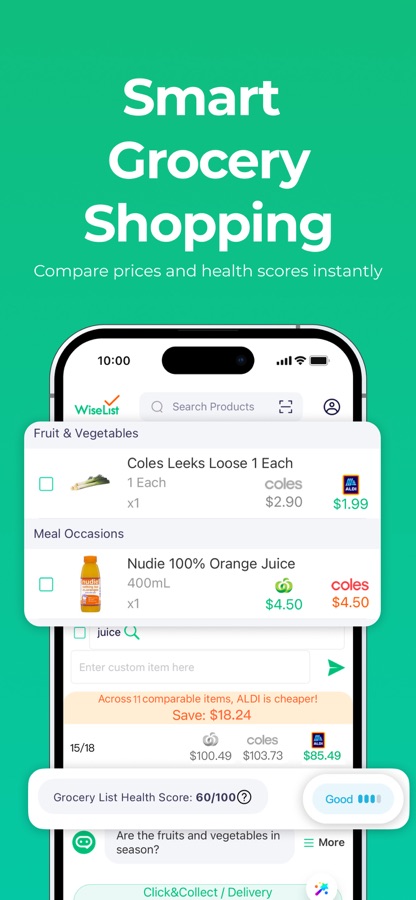 Download WiseList today to shop smarter, eat healthier, organise effortlessly, and save money!