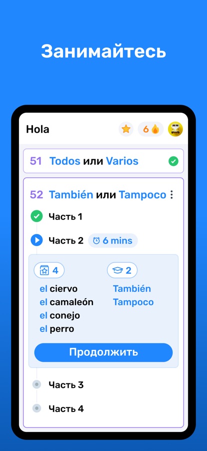 Это приложение прекрасно подойдет вам вне зависимости от вашего уровня испанского: начального или среднего. Благодаря нашему онлайн-курсу испанского языка вы очень быстро почувствуете прогресс в изучении испанского. Миллионы пользователей уже занимаются на наших курсах. Хотите к ним присоединиться?