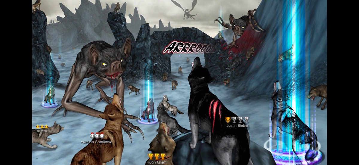 Началась охота волков ради существование и развития своего семейства. Можно участвовать в охоте,выбрав одно из 3(горный,снедный,грубый) семейства и члено их.Чтобы существовать в месте охоты,надо выучить свой навык,постоянно охотиться.Чтобы быстрее расти,надо победить между семействами.В местах охота,разделенных на 6 особенностей,есть не только нагульных скотов(заяц,олень,жираф и т.д.),но и звери,угрожающие и акакующие вас(тигр,лев,носорог и т.д.) Если вы встретите легендарных монстров,которых вы не можете победить,позовите своих друзей,пожалуйста.Сразу соберется,услышав ваш крик.Когда вы готовы,идите сразу в место охоты для волков.