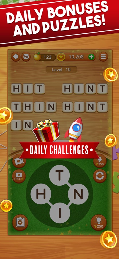 — Daily Challenge gives you more word puzzle games, more bonus coins and more FUN EVERY DAY!